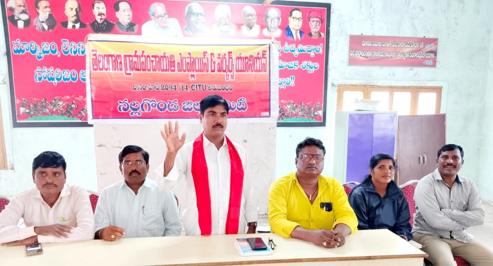 కార్మికుల ఉద్యోగ భద్రతకు (Job security)ముప్పుగా ఉన్న మల్టీ పర్పస్ విధానాన్ని రద్దు చేయాలని, కనీస వేతనాలు చెల్లించాలని అర్హత కలిగిన కార్మి కులను పర్మినెంట్ చేయాలని, ప్రమాద బీమా 10 లక్షలు చెల్లిం చాలని, బిల్ కలెక్టర్ కారోబార్లకు ప్రత్యేక హెూదా కల్పించాలని, ఇతర సమస్యలు పరిష్కరించాలని డిమాండ్ చేశారు. నల్గొండ జిల్లాలో కార్మికులను తొలగిస్తామని భయ భ్రాంతులకు గురి చేస్తున్న అధికారు లపై చర్యలు తీసుకోవాలని డిమాం డ్ చేశారు. ఈ సమావేశంలో సిఐటి యు జిల్లా నాయకులు పెంజర్ల సైదులు, పోలే సత్యనారాయణ, యూనియన్ జిల్లా నాయకులు ఎన్ నరసింహ, జి. ఆశీర్వాదం, పి సర్వయ్య, మంద ఎల్లయ్య, ఏ కోటయ్య, ఊరేప్రభాకర్, ఏర్పుల సైదులు, యాదమ్మ,, నాంపల్లి నరేష్, కాసర్ల స్వప్న, వడ్డే గాని యాదయ్య, సుధాకర్, రామలిం గయ్య, కొండేటి నరసయ్య, ఆంజనేయులు తదితరులు పాల్గొన్నారు.
