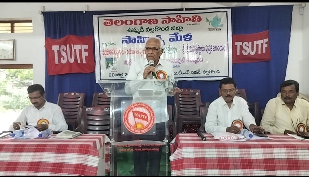 Dr. Nandini Sidha Reddy : ప్రజాదీవెన నల్గొండ : సమాజాన్ని అధ్యయనం చేయకుండా కవిత్వం రాయడం వల్ల సరైన కవిత్వం రాదు. యువకులు సమాజంలోని అనేక విషయాలపై దృష్టి సాధించాలని అక్షరాన్ని ఆయుధంగా మార్చుకొని సమాజాన్ని సంస్కరించడానికి తమ వంతు కర్తవ్యం నిర్వహించాలని ప్రముఖ సాహితీవేత్త, తెలంగాణ సాహిత్య అకాడమి తొలి అధ్యక్షులు డాక్టర్ నందిని సిధారెడ్డి అన్నారు.ఆదివారం నల్లగొండ యుటిఎఫ్ భవన్ లో తెలంగాణ సాహితి ఆధ్వర్యంలో సాహిత్య మేళ నిర్వహించారు. ఉదయం 10 గంటలకు యువ కవి సమ్మేళనం నిర్వహించారు. ఈ కార్యక్రమనికి ఉమ్మడి నల్లగొండ వ్యాప్తంగా డిగ్రీ, పీజీ విద్యార్థులు, 30 మంది కవులు సభలో కవితా పఠనం చేశారు. ఈ కార్యక్రమానికి ముఖ్యఅతిథిగా ఆయన విచ్చేసి మాట్లాడారు. యువతరం సాహిత్యంలో రాణించాలని పిలుపునిచ్చారు. మరో అంశం శ్రీశ్రీ మహప్రస్థానం పుస్తక పరిచయం పై కవి రచయిత మహబూబ్ నగర్ జిల్లా అడిషనల్ కలెక్టర్ డాక్టర్ ఏనుగు నరసింహ రెడ్డి మాట్లాడుతూ మహాప్రస్థానం యువకులకు లాంగ్ మార్చ్ లాంటిదని, కుల మత ఎల్లలు దాటి శ్రామిక జన సమూహంగా ఉద్యమించినప్పుడే సమ సమాజం వస్తుదని అన్నారు.
